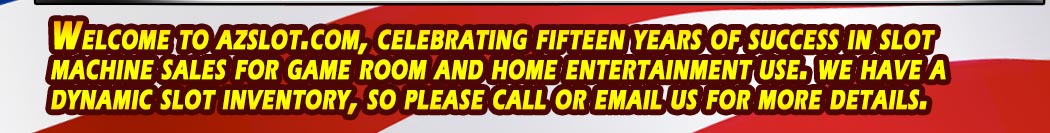 Arizona Slot Machine company specializes in refurbishing used slot machines from leading slot machine manufacturers including IGT, Bally, Konami, Aristocrat and WMS Gaming. We professionally refurbish and restore used casino slot machines and video poker machines to excellent condition. Our company is a family-owned business based in Phoenix Arizona and have been in business since 2003. We proudly back every one of our slot and video poker machines with a 6 month limited parts warranty.